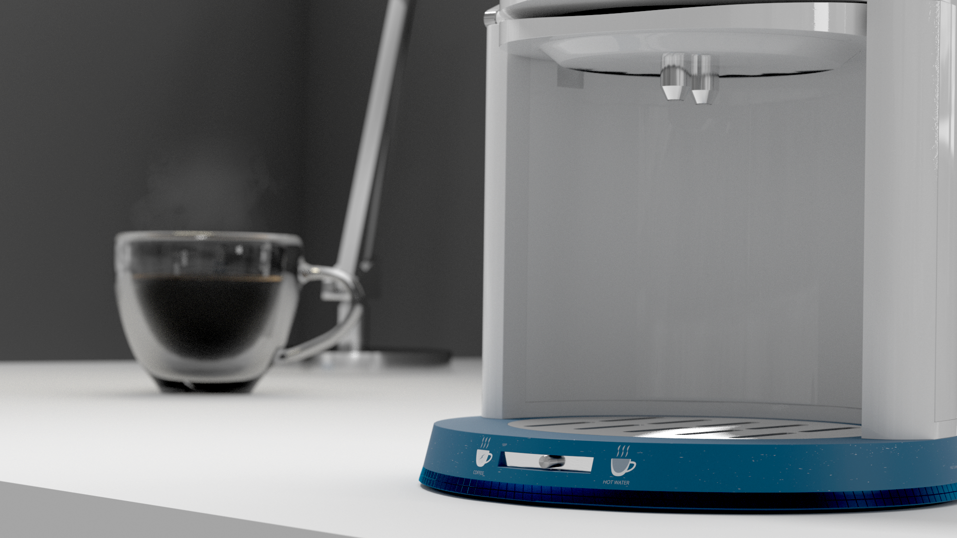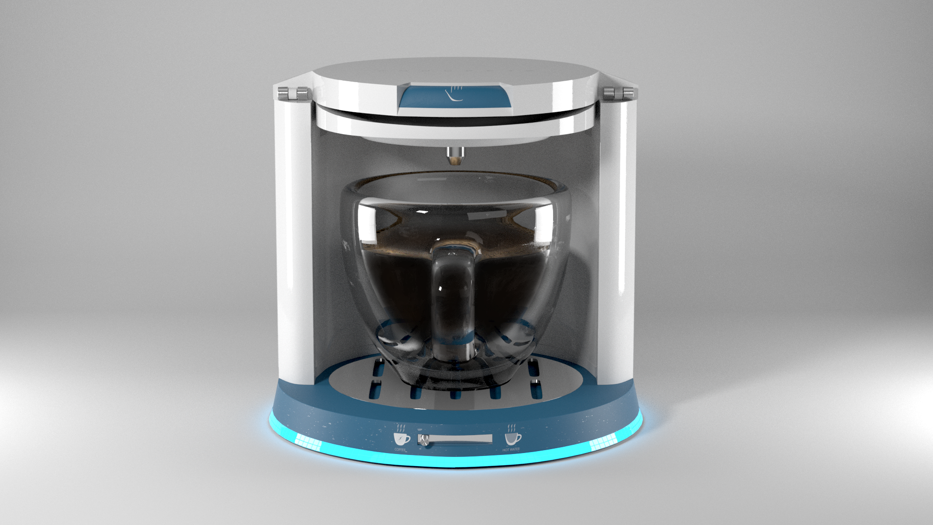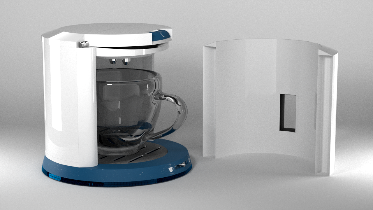 In addition to the branding I also made a product design for a fake product called "Cup". Cup is a coffee machine which is designed for just one cup. The product is mainly targeted at people who travel a lot or people who are living alone. When not in use, the cup can be stored inside the device which is very convenient for travelling.