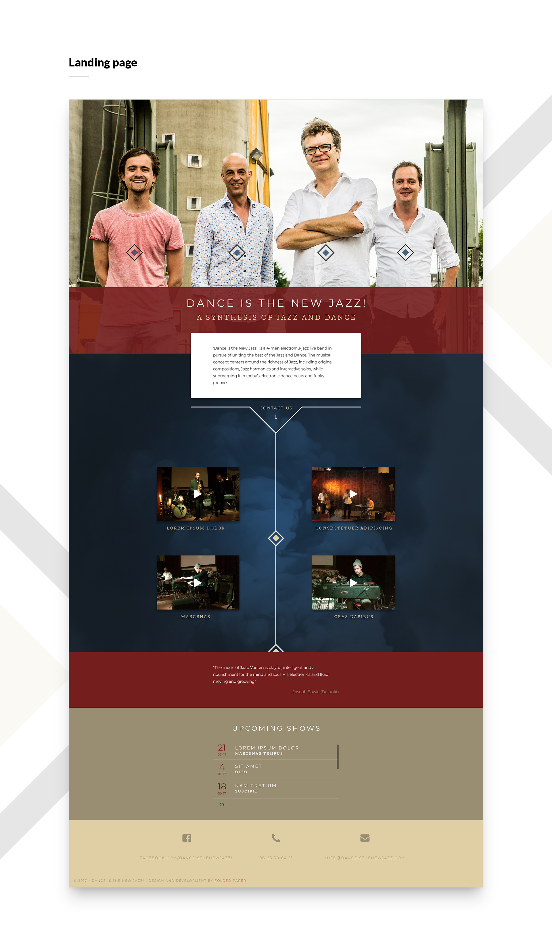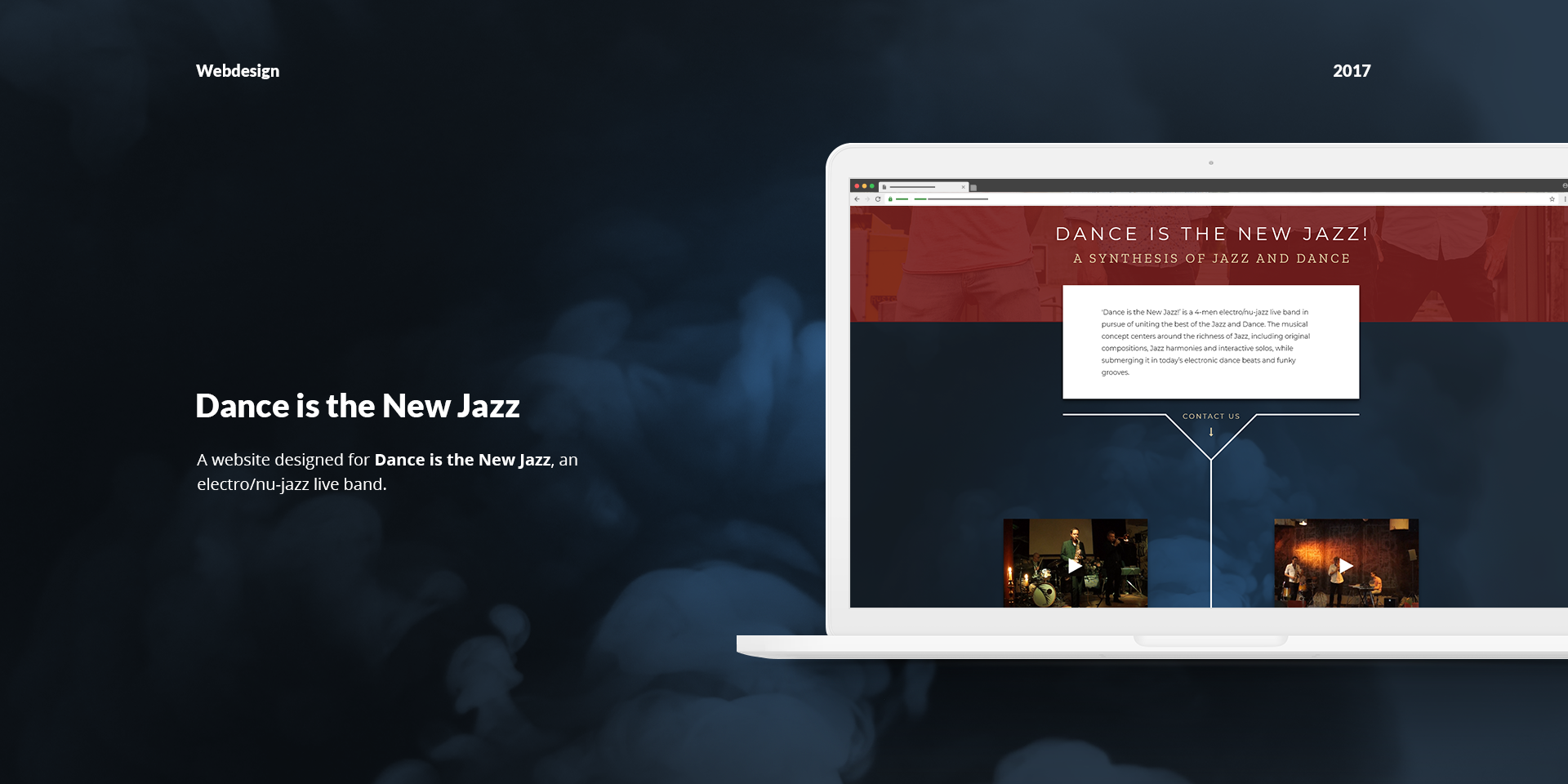 A website designed for electro/nu-jazz band, Dance is the New Jazz.