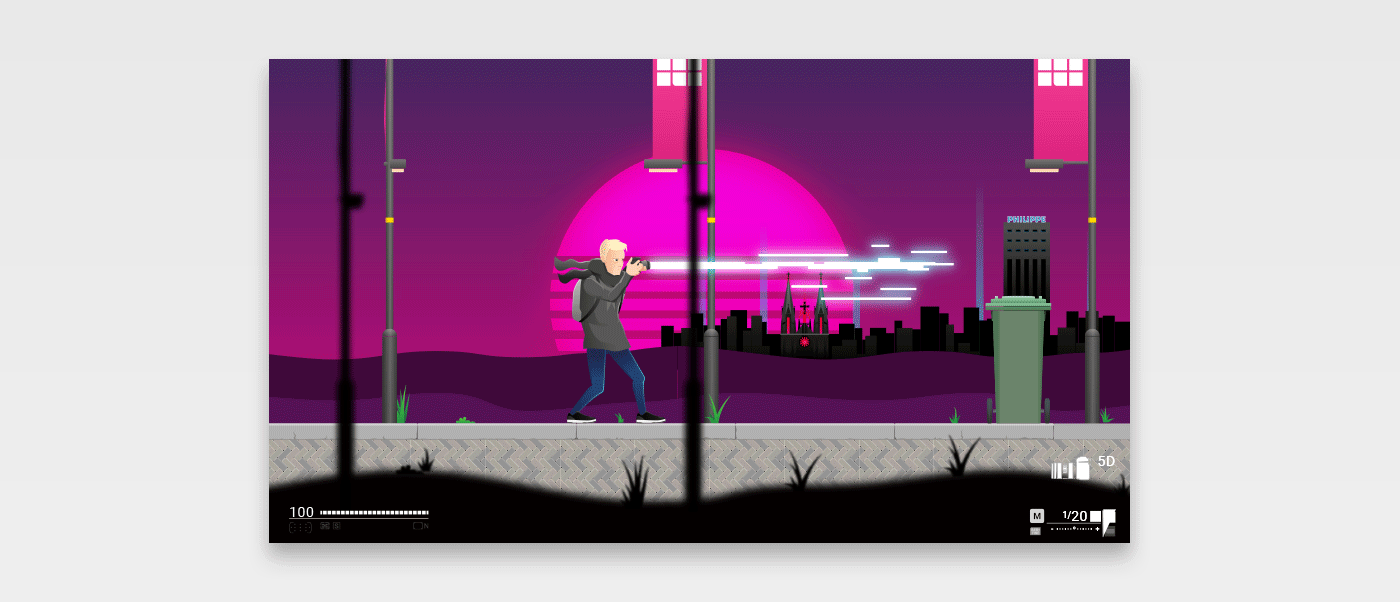 Niels Unleashed V2 is a 2D platform game concept. The look of the game is heavily inspired by outrun visuals.